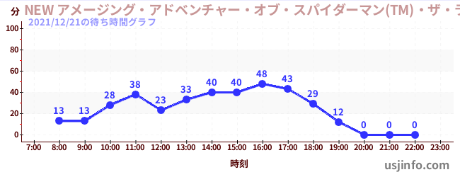 • NEW アメージング・アドベンチャー・オブ・スパイダーマン(TM)・ザ・ライド 4K3D$B$N(B2021年12月21日の待ち時間