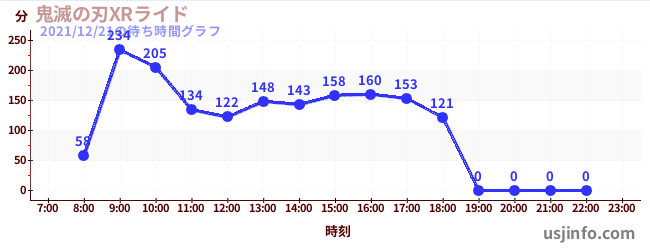 • 鬼滅の刃XRライド$B$N(B2021年12月21日の待ち時間