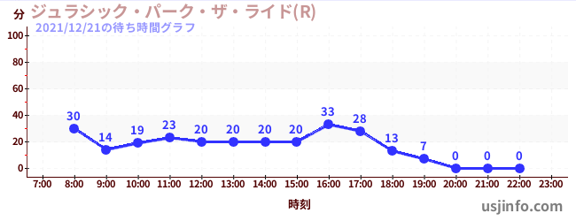 • ジュラシック・パーク・ザ・ライド(R)$B$N(B2021年12月21日の待ち時間
