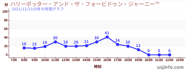 • ハリーポッター・アンド・ザ・フォービドゥン・ジャーニー™$B$N(B2021年12月21日の待ち時間