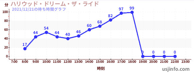 • ハリウッド・ドリーム・ザ・ライド$B$N(B2021年12月21日の待ち時間