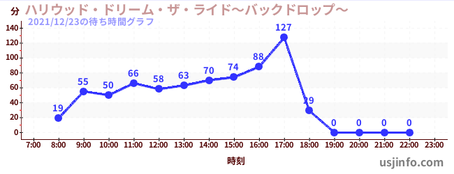 • ハリウッド・ドリーム・ザ・ライド〜バックドロップ〜$B$N(B2021年12月23日の待ち時間