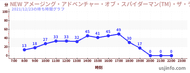 • NEW アメージング・アドベンチャー・オブ・スパイダーマン(TM)・ザ・ライド 4K3D$B$N(B2021年12月23日の待ち時間