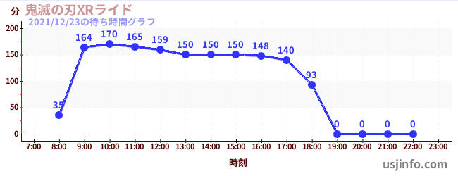 • 鬼滅の刃XRライド$B$N(B2021年12月23日の待ち時間