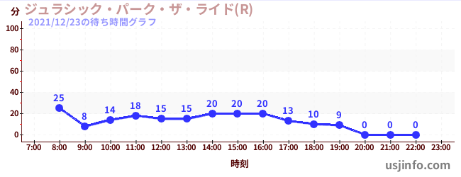• ジュラシック・パーク・ザ・ライド(R)$B$N(B2021年12月23日の待ち時間