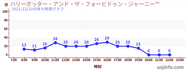 • ハリーポッター・アンド・ザ・フォービドゥン・ジャーニー™$B$N(B2021年12月23日の待ち時間