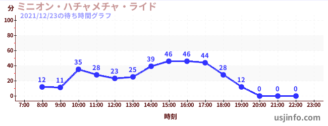 • ミニオン・ハチャメチャ・ライド$B$N(B2021年12月23日の待ち時間