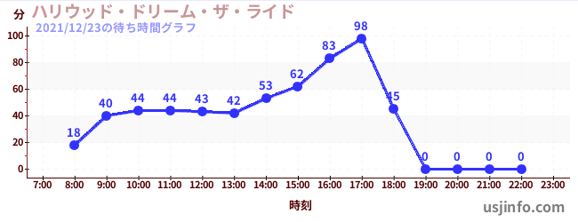 • ハリウッド・ドリーム・ザ・ライド$B$N(B2021年12月23日の待ち時間