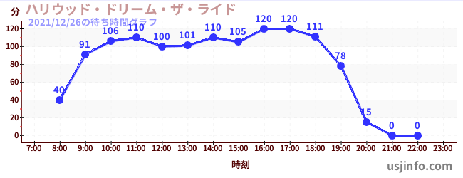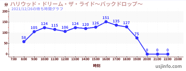 • ハリウッド・ドリーム・ザ・ライド〜バックドロップ〜$B$N(B2021年12月26日の待ち時間