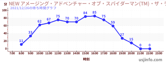 • NEW アメージング・アドベンチャー・オブ・スパイダーマン(TM)・ザ・ライド 4K3D$B$N(B2021年12月26日の待ち時間