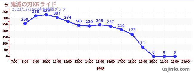• 鬼滅の刃XRライド$B$N(B2021年12月26日の待ち時間