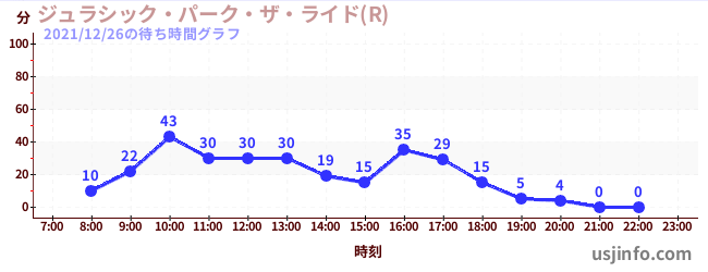 • ジュラシック・パーク・ザ・ライド(R)$B$N(B2021年12月26日の待ち時間