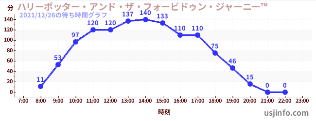 • ハリーポッター・アンド・ザ・フォービドゥン・ジャーニー™$B$N(B2021年12月26日の待ち時間