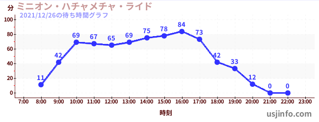 • ミニオン・ハチャメチャ・ライド$B$N(B2021年12月26日の待ち時間