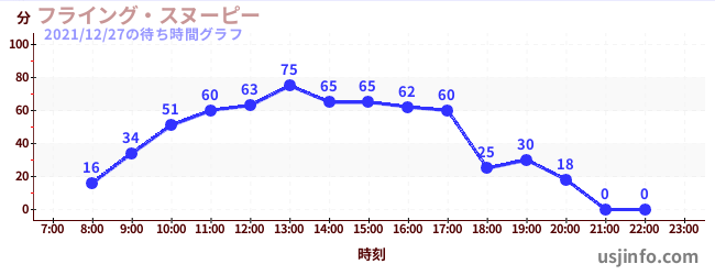 • フライング・スヌーピー$B$N(B2021年12月27日の待ち時間