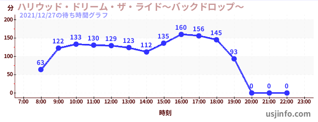 • ハリウッド・ドリーム・ザ・ライド〜バックドロップ〜$B$N(B2021年12月27日の待ち時間