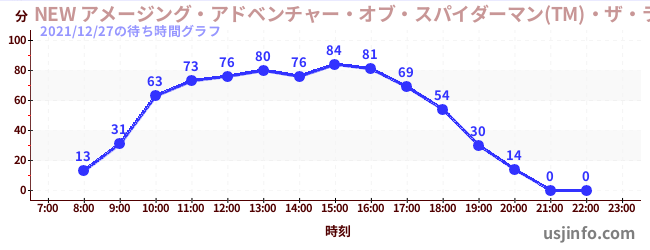 • NEW アメージング・アドベンチャー・オブ・スパイダーマン(TM)・ザ・ライド 4K3D$B$N(B2021年12月27日の待ち時間