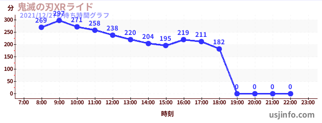 • 鬼滅の刃XRライド$B$N(B2021年12月27日の待ち時間