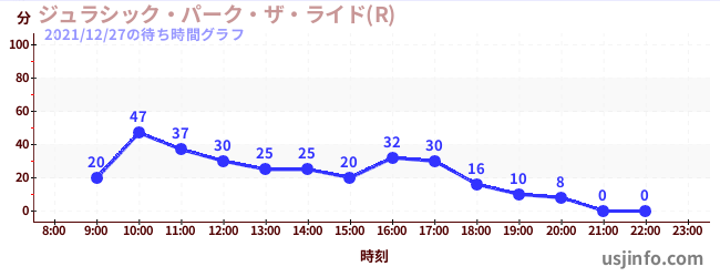 • ジュラシック・パーク・ザ・ライド(R)$B$N(B2021年12月27日の待ち時間