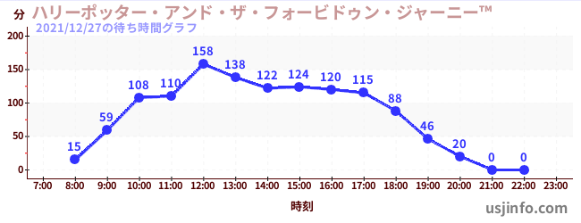 • ハリーポッター・アンド・ザ・フォービドゥン・ジャーニー™$B$N(B2021年12月27日の待ち時間