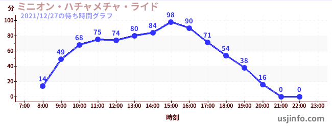 • ミニオン・ハチャメチャ・ライド$B$N(B2021年12月27日の待ち時間