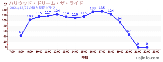 • ハリウッド・ドリーム・ザ・ライド$B$N(B2021年12月27日の待ち時間