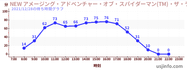 • NEW アメージング・アドベンチャー・オブ・スパイダーマン(TM)・ザ・ライド 4K3D$B$N(B2021年12月28日の待ち時間