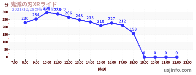 • 鬼滅の刃XRライド$B$N(B2021年12月28日の待ち時間