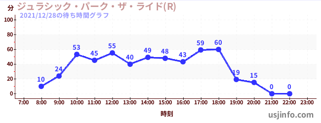 • ジュラシック・パーク・ザ・ライド(R)$B$N(B2021年12月28日の待ち時間