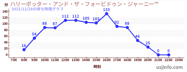 • ハリーポッター・アンド・ザ・フォービドゥン・ジャーニー™$B$N(B2021年12月28日の待ち時間