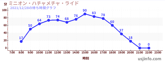 • ミニオン・ハチャメチャ・ライド$B$N(B2021年12月28日の待ち時間