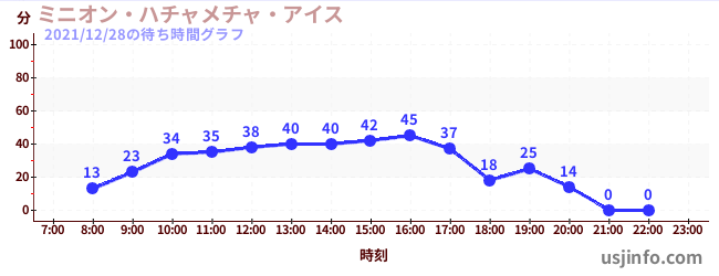 • ミニオン・ハチャメチャ・アイス$B$N(B2021年12月28日の待ち時間