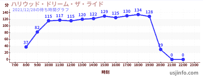 • ハリウッド・ドリーム・ザ・ライド$B$N(B2021年12月28日の待ち時間