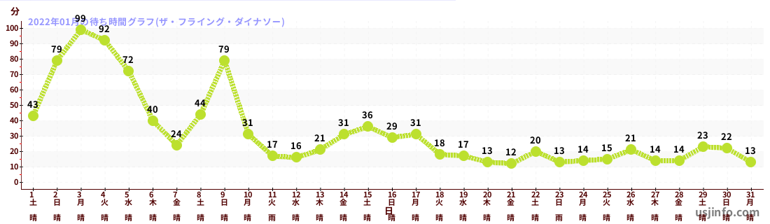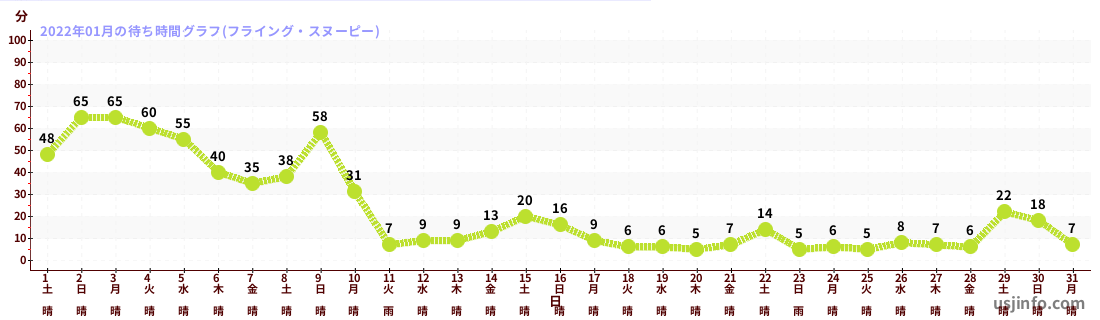 • フライング・スヌーピー$B$N(B2022年01月01日のの一日平均待ち時間