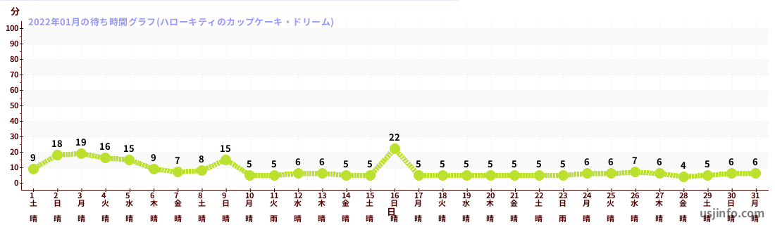 • ハローキティのカップケーキ・ドリーム$B$N(B2022年01月01日のの一日平均待ち時間