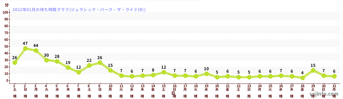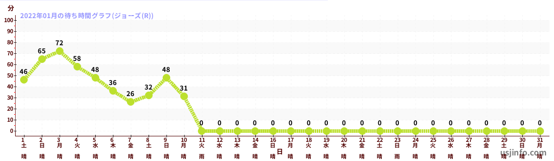 • ジョーズ(R)$B$N(B2022年01月01日のの一日平均待ち時間