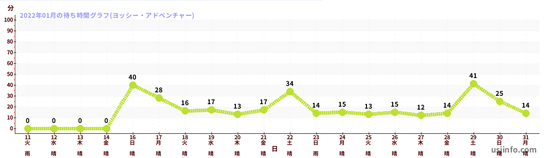 • ヨッシー・アドベンチャー$B$N(B2022年01月01日のの一日平均待ち時間