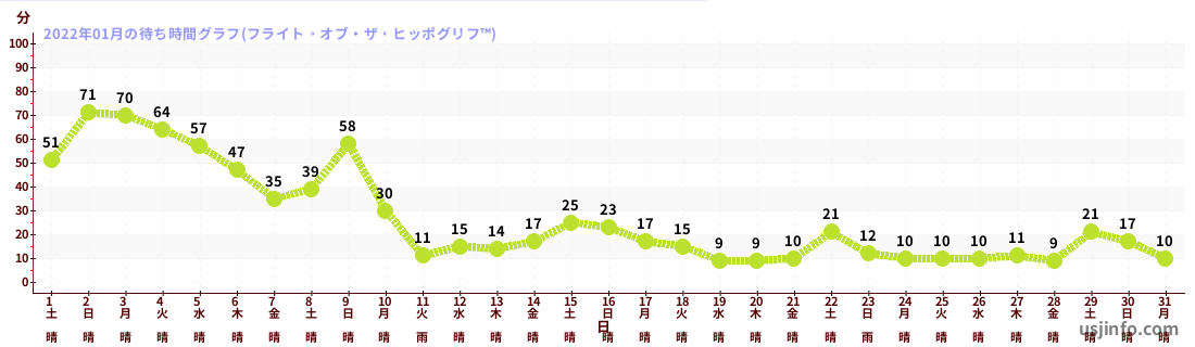 • フライト・オブ・ザ・ヒッポグリフ™$B$N(B2022年01月01日のの一日平均待ち時間