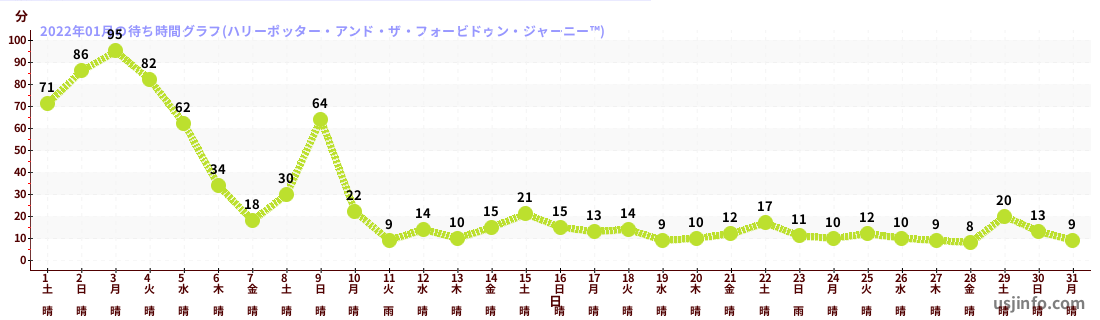 • ハリーポッター・アンド・ザ・フォービドゥン・ジャーニー™$B$N(B2022年01月01日のの一日平均待ち時間