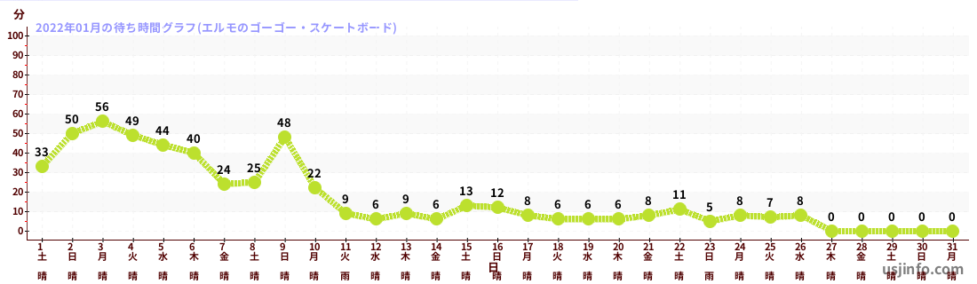 • エルモのゴーゴー・スケートボード$B$N(B2022年01月01日のの一日平均待ち時間