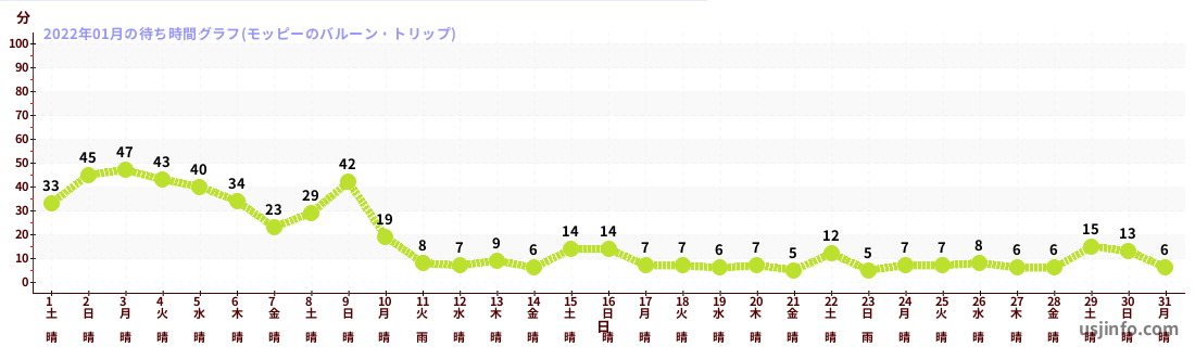 • モッピーのバルーン・トリップ$B$N(B2022年01月01日のの一日平均待ち時間