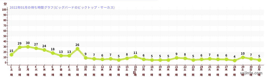 • ビッグバードのビックトップ・サーカス$B$N(B2022年01月01日のの一日平均待ち時間