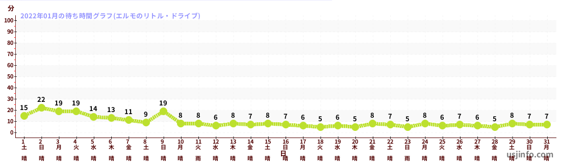 • エルモのリトル・ドライブ$B$N(B2022年01月01日のの一日平均待ち時間