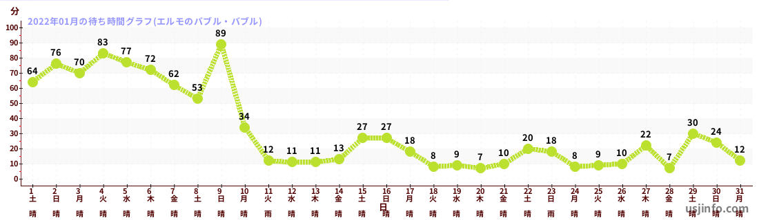• エルモのバブル・バブル$B$N(B2022年01月01日のの一日平均待ち時間