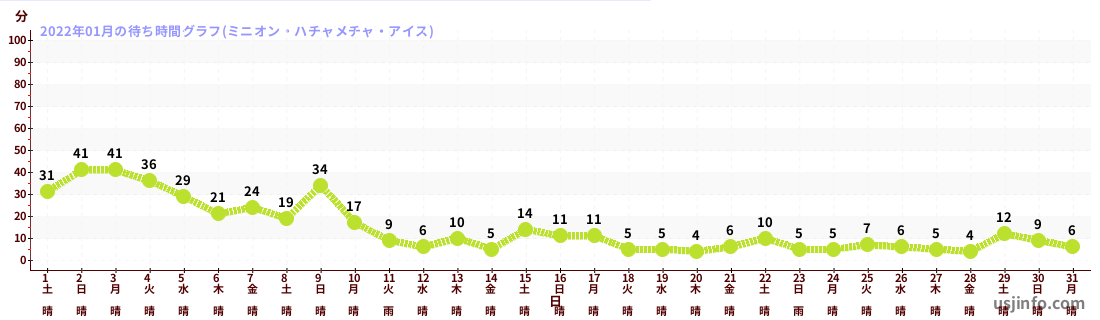 • ミニオン・ハチャメチャ・アイス$B$N(B2022年01月01日のの一日平均待ち時間
