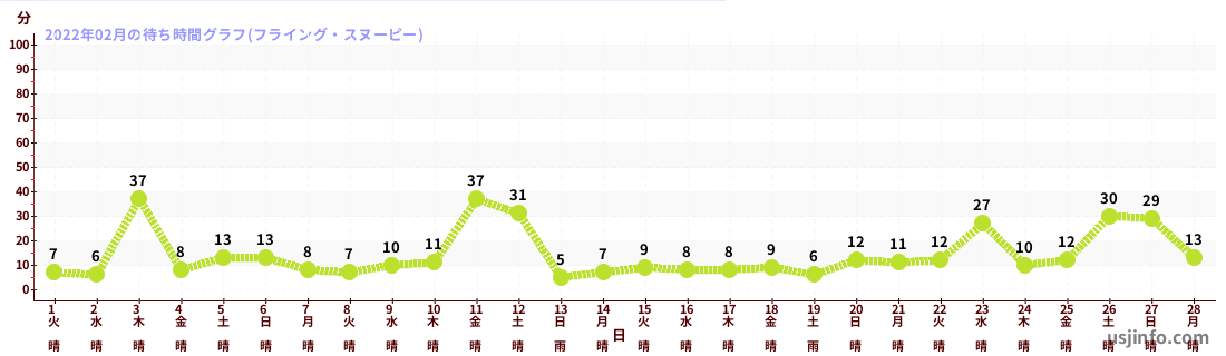 • フライング・スヌーピー$B$N(B2022年02月01日のの一日平均待ち時間