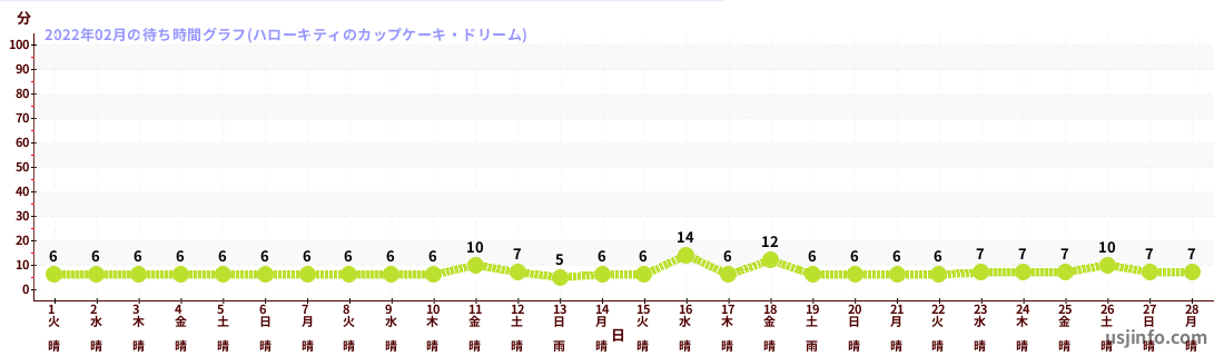 • ハローキティのカップケーキ・ドリーム$B$N(B2022年02月01日のの一日平均待ち時間
