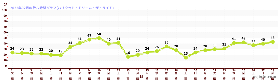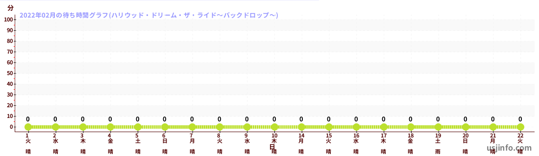 • ハリウッド・ドリーム・ザ・ライド$B$N(B2022年02月01日のの一日平均待ち時間