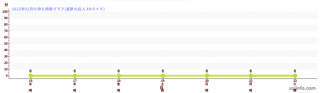 • 進撃の巨人 XRライド$B$N(B2022年02月01日のの一日平均待ち時間