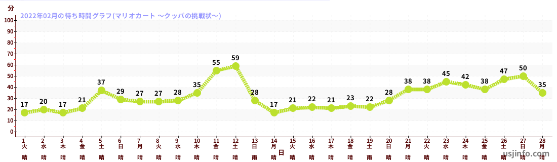 • マリオカート ~クッパの挑戦状~$B$N(B2022年02月01日のの一日平均待ち時間